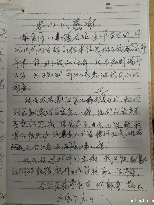 之后他病情恢复的差不多要出院了,他又来到了我们科室,说一定要给我们拍点照片带回家,还要写一篇感谢信,还说信的内容已经想了很久了,之前因为没力气,现在有力气了所以一定要写一篇,表示对我们的感谢!