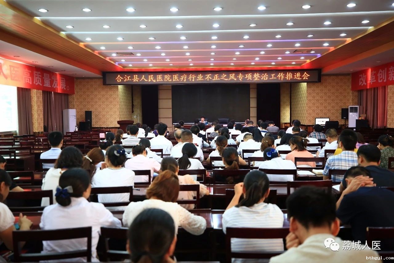 为贯彻落实县委、县政府、县卫生健康局“不忘初心、牢记使命”主题教育的安排部署和工作要求 ,9月30日下午,我院在行政楼六楼会议室召开医疗卫生行业不正之风整治工作推进会。会议由医院党委书记雷志群同志主持,院领导班子成员、中层干部、各支委成员和各支部党员代表等参加了推进会。