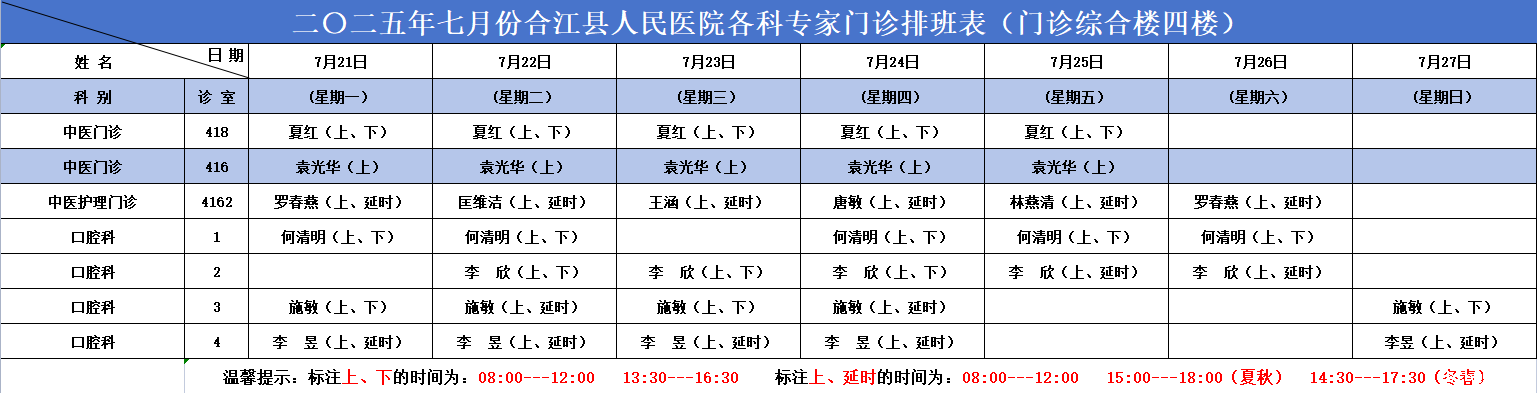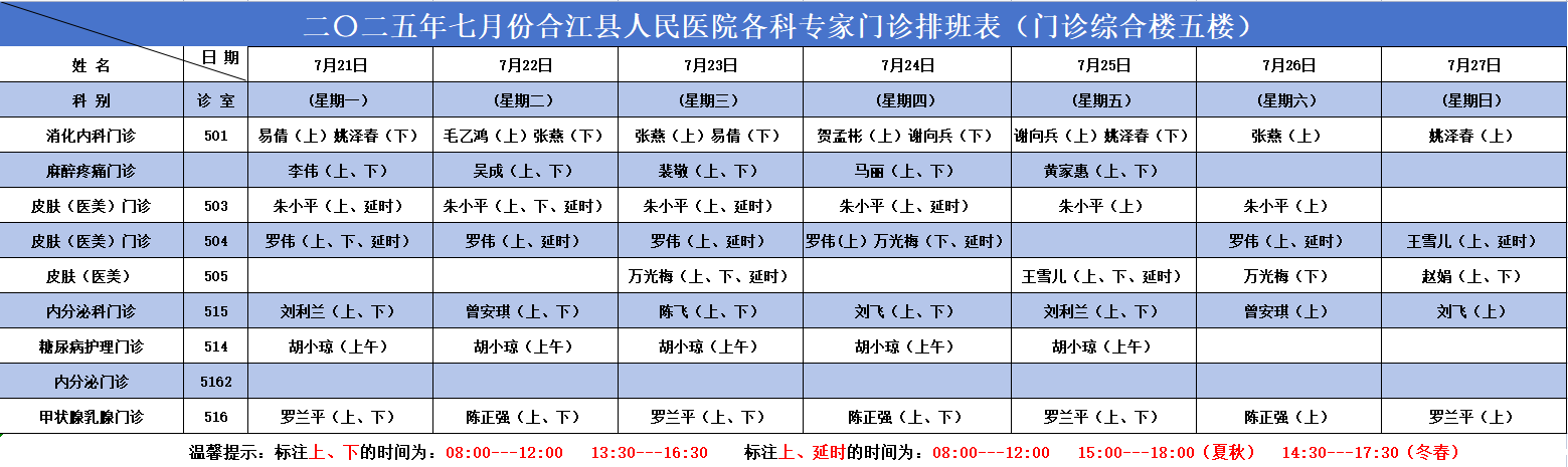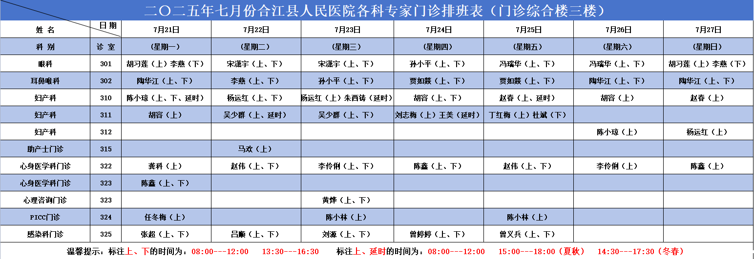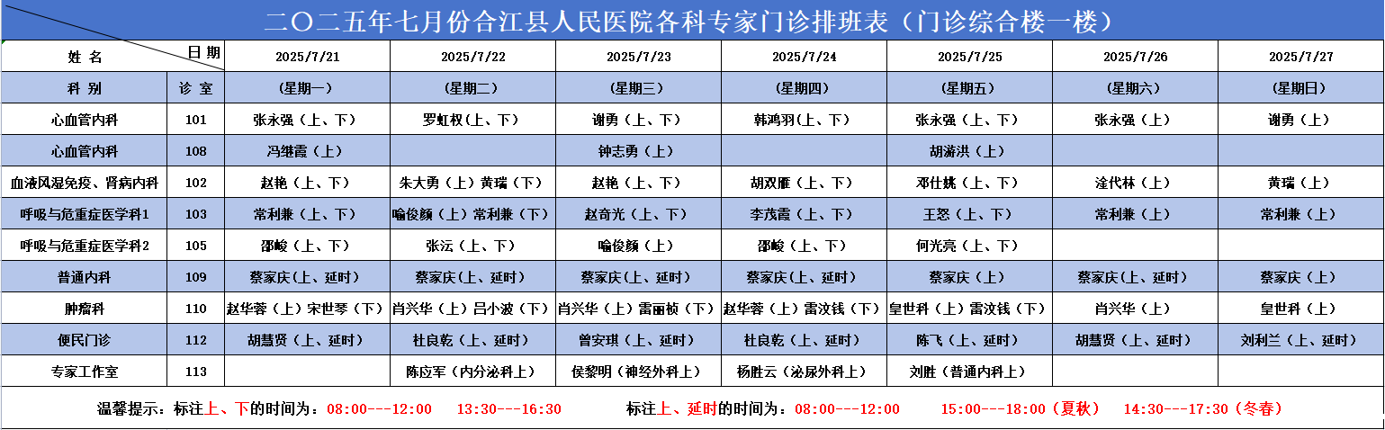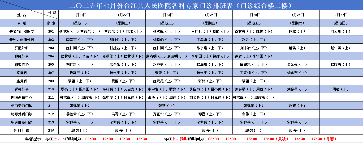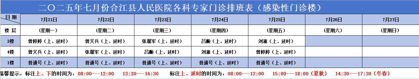 必威betway西汉姆联官方网站2025.07.21-2025.07.27各科专家门诊排班表